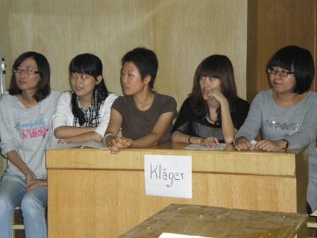 Wir haben hier allerdings eine Zivilgerichtsverhandlung nachgestellt, in der es um einen Kaufvertrag ging. Es war ganz amüsant und auch überraschend gut, die Studenten haben uns mit ihrer Kreativität und den Verhandlungskünsten überrascht. Ein Video und Fotos wurden auch gemacht, daher hier mal ein paar Impressionen mit „stehenden“ Bildern. Die laufenden Bilder, sprich das Video, gibt es dann wenn ich wieder zurück bin.
