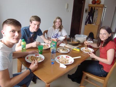 Es gab Spaghetti (chinesische Bandnudeln) Bolognese. Und es schmeckte einfach nur lecker. Gekocht hatte dieses Festmahl unsere Mittutorin Sonja.
