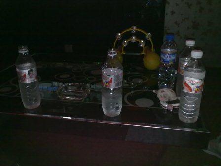 Da die Chinesen so etwas wie Diskos oder ähnlichem eigentlich nicht kennen, ist die Karaoke-Bar für sie der Ort, an dem man abends hingehen kann. Allerdings ist es nicht wie bei uns eine Bühne, auf der einer alleine für die gesamte Bar singt. Hier gibt es viele verschiedene, kleine Räume, in die man jeweils mit seiner Gruppe rein geht. In jeden Raum können so 10-15 Personen, man ist also eher unter sich. Getränke gibt es natürlich auch, schaut mal: