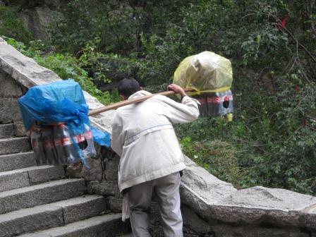 An der Mittelstation angekommen hatten wir die Möglichkeit, einen Bus für den Rest des Weges zu nehmen, aber unser Ehrgeiz war geweckt, und wir wollten sagen, dass wir den gesamten Weg hoch auf den Tai´Shan und den gesamten Weg runter selbst gelaufen waren.