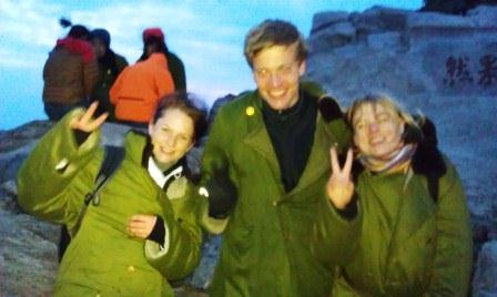immerhin konnte man den Sonnenaufgang erahnen, und dafür die ganzen Anstrengungen (wir waren schon wieder auf dem Rückweg, aber der Aufschrei der Chinesen hat uns zur Aussichtsplattform zurück "geholt", sonst hätten wir gar nichts mitbekommen...)