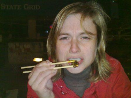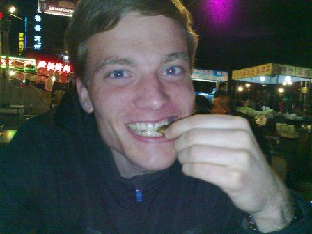 Am Nachtmarkt und insbesondere bei den Essenständen angekommen überkam uns aber irgendwie die clevere Idee (vielleicht waren wir ja immer noch euphorisiert vom Erfolgserlebnis, dass wir den Berg hoch und runter gelaufen waren), doch mal Käfer zu probieren. Eigentlich müsste ich ja sagen, mich überkam die Idee, Anne musste dann nur mit drunter leiden, aber wer wird denn schon so kleinlich sein ;-)