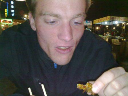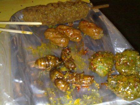 Am Nachtmarkt und insbesondere bei den Essenständen angekommen überkam uns aber irgendwie die clevere Idee (vielleicht waren wir ja immer noch euphorisiert vom Erfolgserlebnis, dass wir den Berg hoch und runter gelaufen waren), doch mal Käfer zu probieren. Eigentlich müsste ich ja sagen, mich überkam die Idee, Anne musste dann nur mit drunter leiden, aber wer wird denn schon so kleinlich sein ;-)