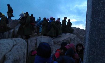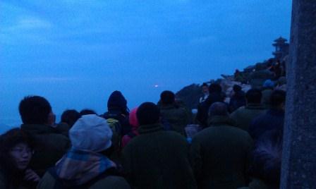 immerhin konnte man den Sonnenaufgang erahnen, und dafür die ganzen Anstrengungen (wir waren schon wieder auf dem Rückweg, aber der Aufschrei der Chinesen hat uns zur Aussichtsplattform zurück "geholt", sonst hätten wir gar nichts mitbekommen...)